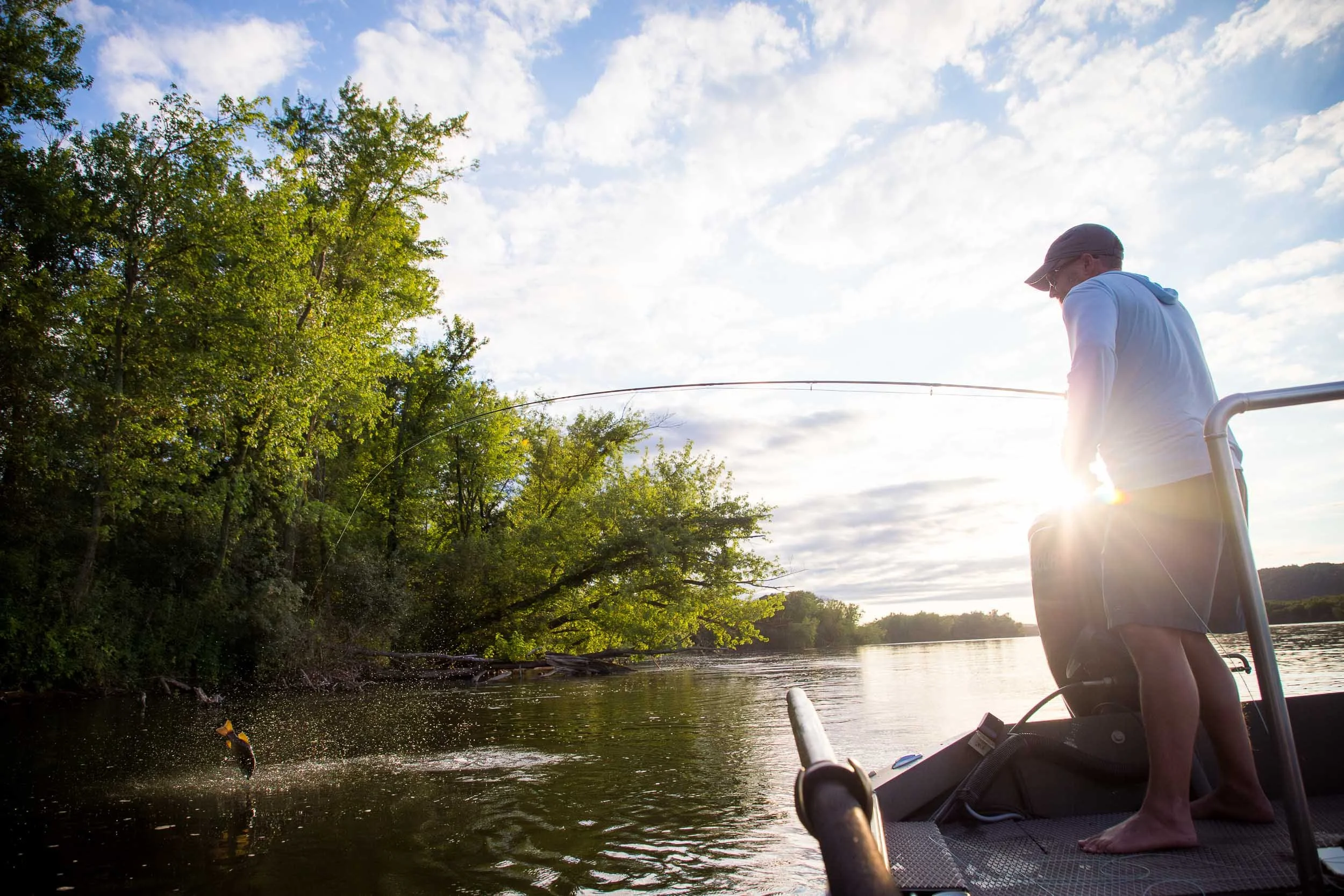 The Lower Wisconsin River runs 92 miles un-dammed — the longest free-flowing section of river in the Midwest. We run it with jet-powered jon boats, reaching water that most anglers never see: golden sandbars, limestone bluffs, and some of the hardest-fighting smallmouth bass in the region. Full and half-day float trips with a freshly prepared sandbar lunch included. This is bucket-list water that happens to be right in your backyard.