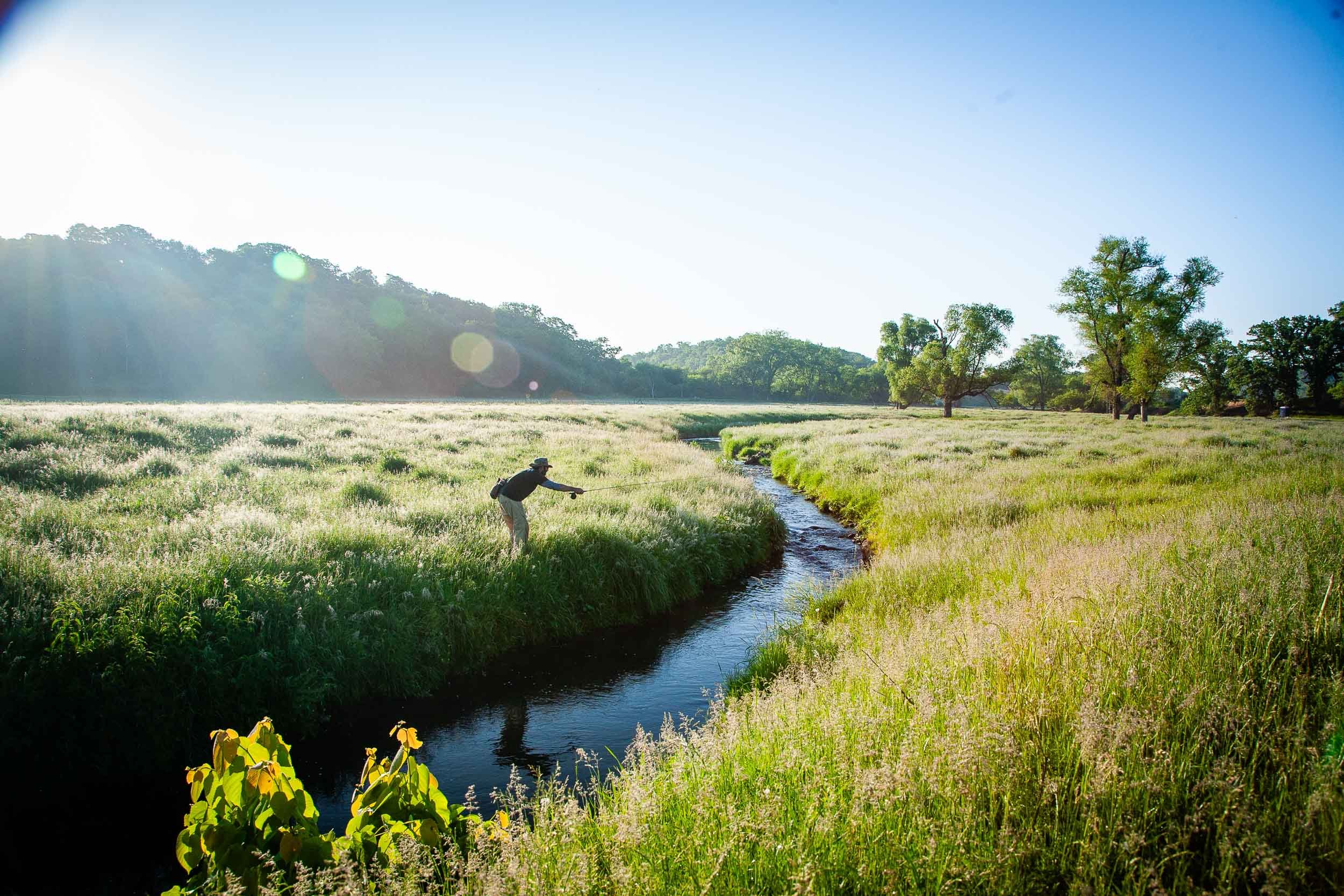 The famous Black Earth Creek runs just west of Madison — one of the most celebrated spring creeks in the Midwest and the water that gave Black Earth Angling Co. its name. From there, the Driftless Region unfolds for miles: limestone spring creeks, wooded coulees, and wild brown and brook trout that have been there long before anyone started calling it a destination.